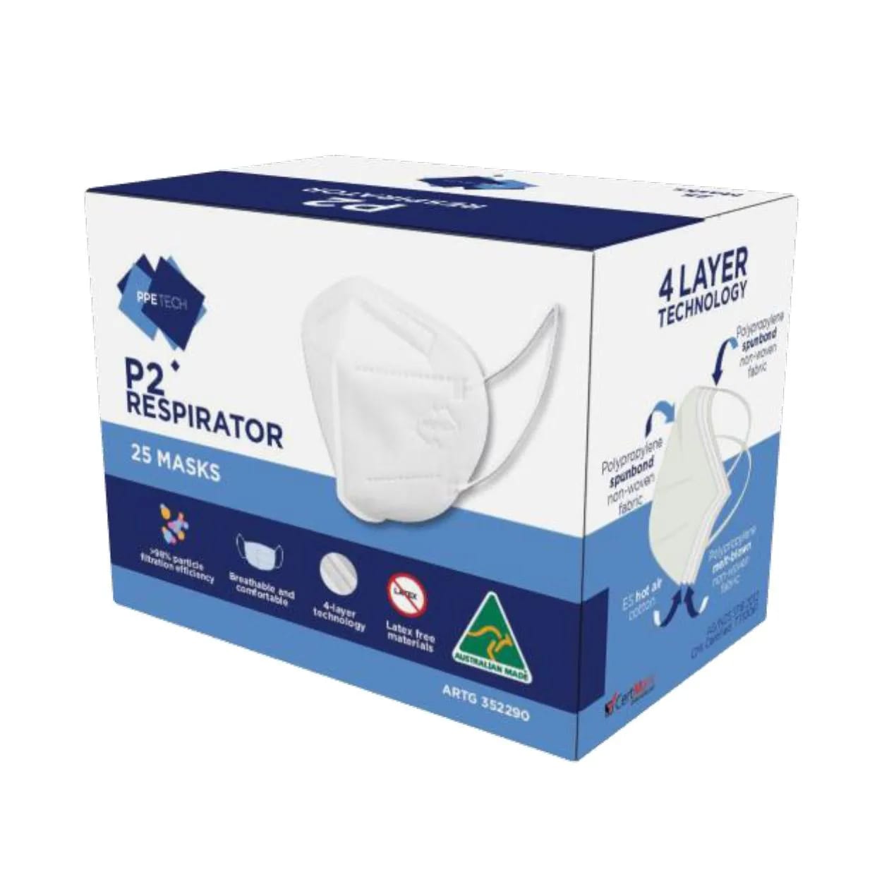 P2 Respirator Mask, Fold Flat, Box of 25